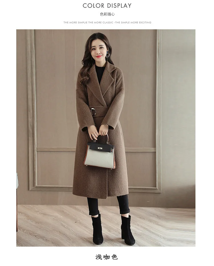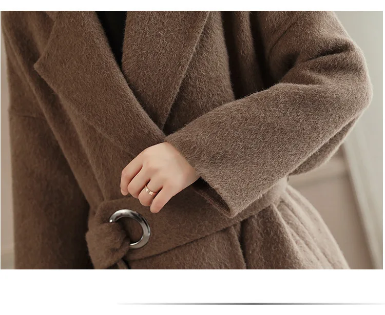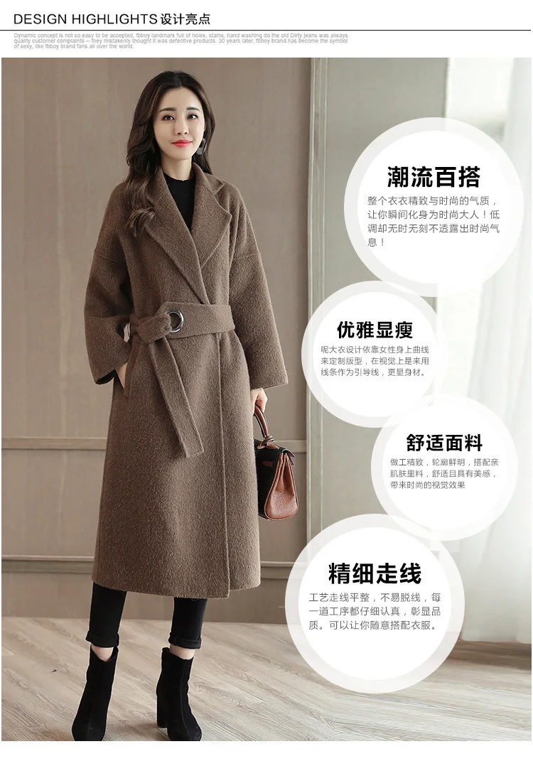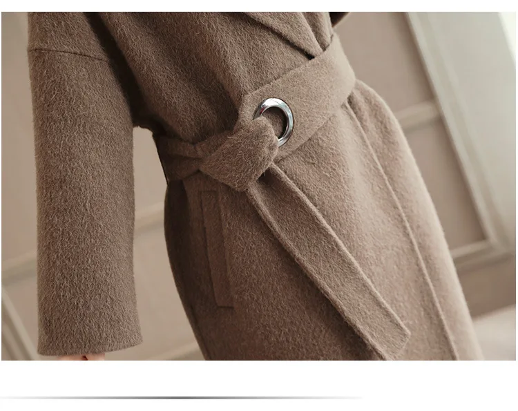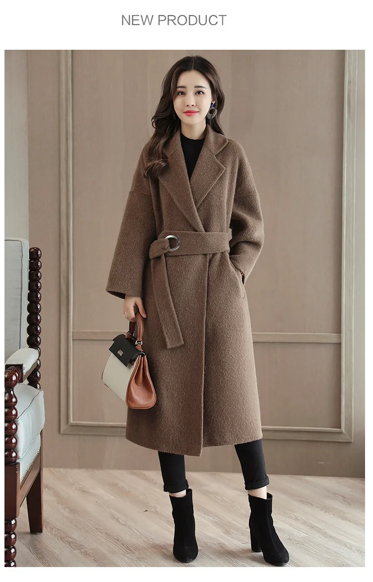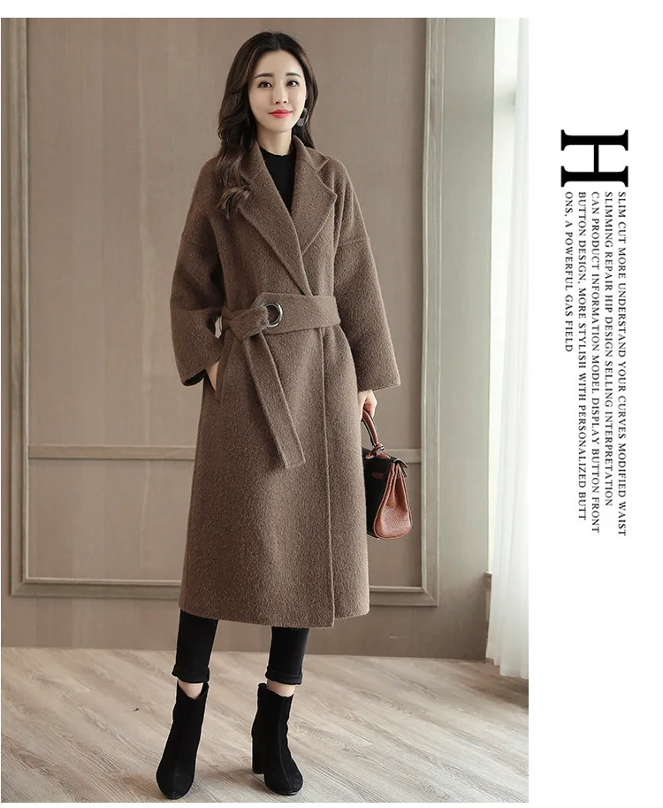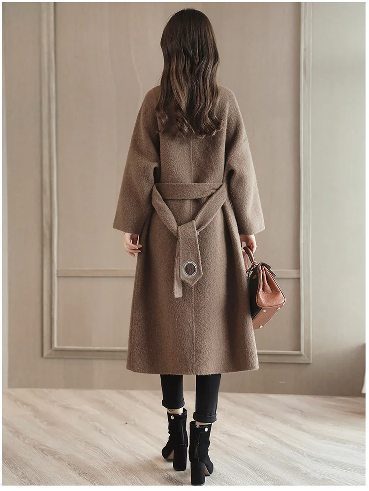 2025 Winter Office Lady Belt Dames Lange Winter Wollen Mix Jas Omslagkraag Wollen Jas En Jas Losse Effen Bovenkleding