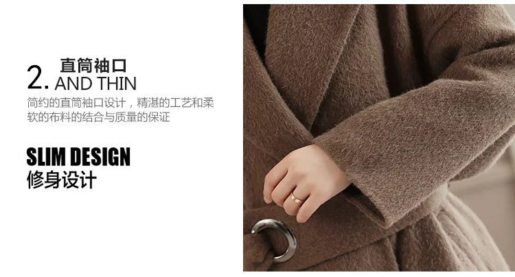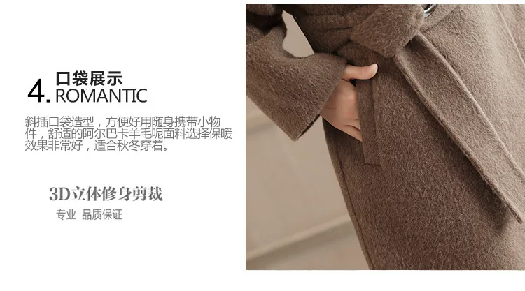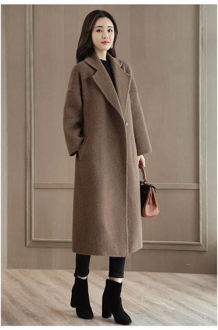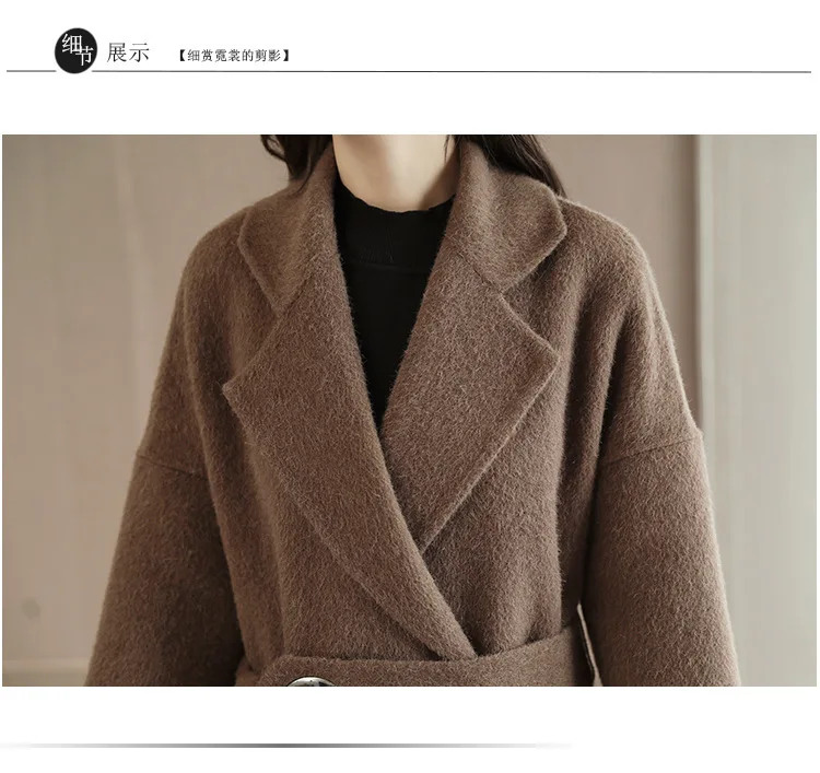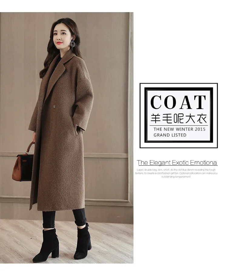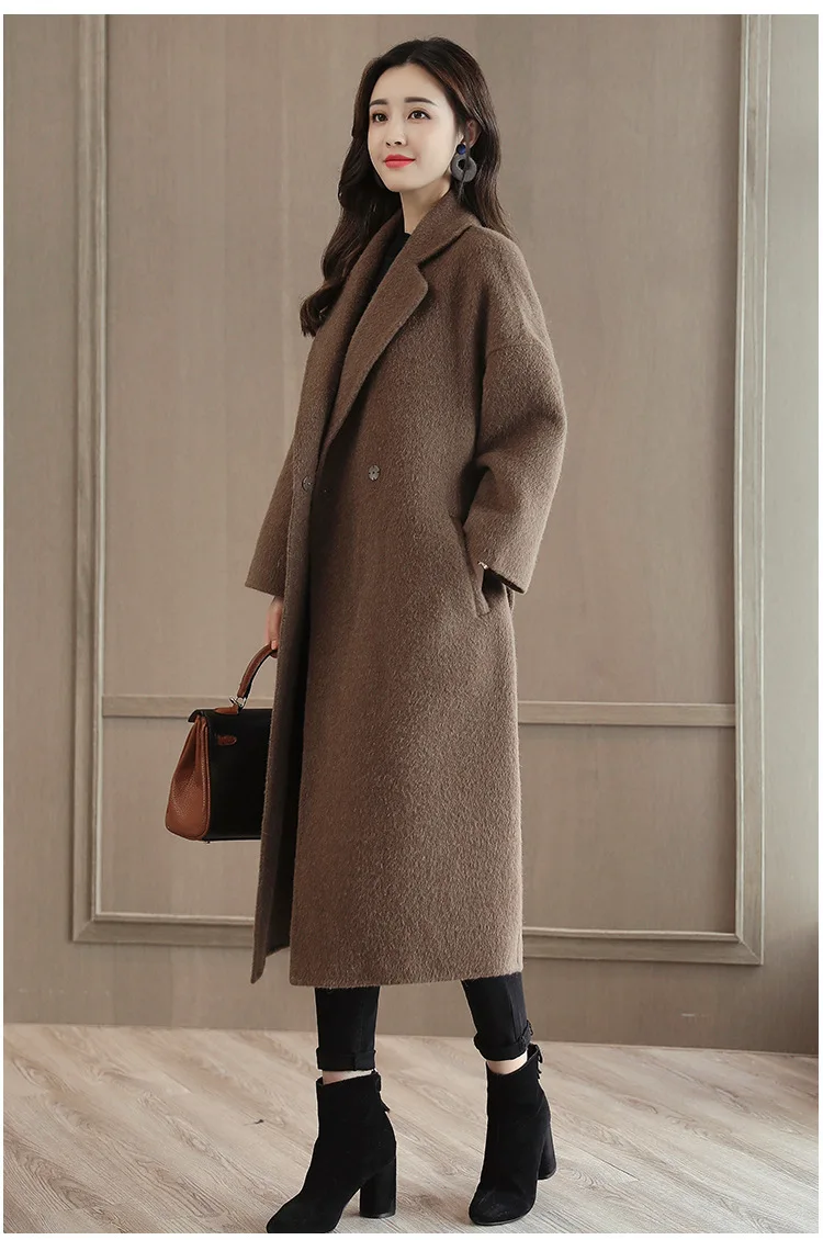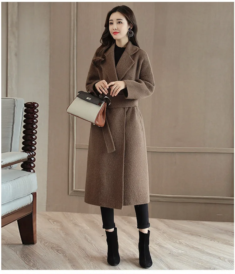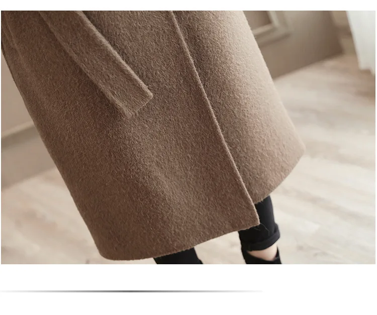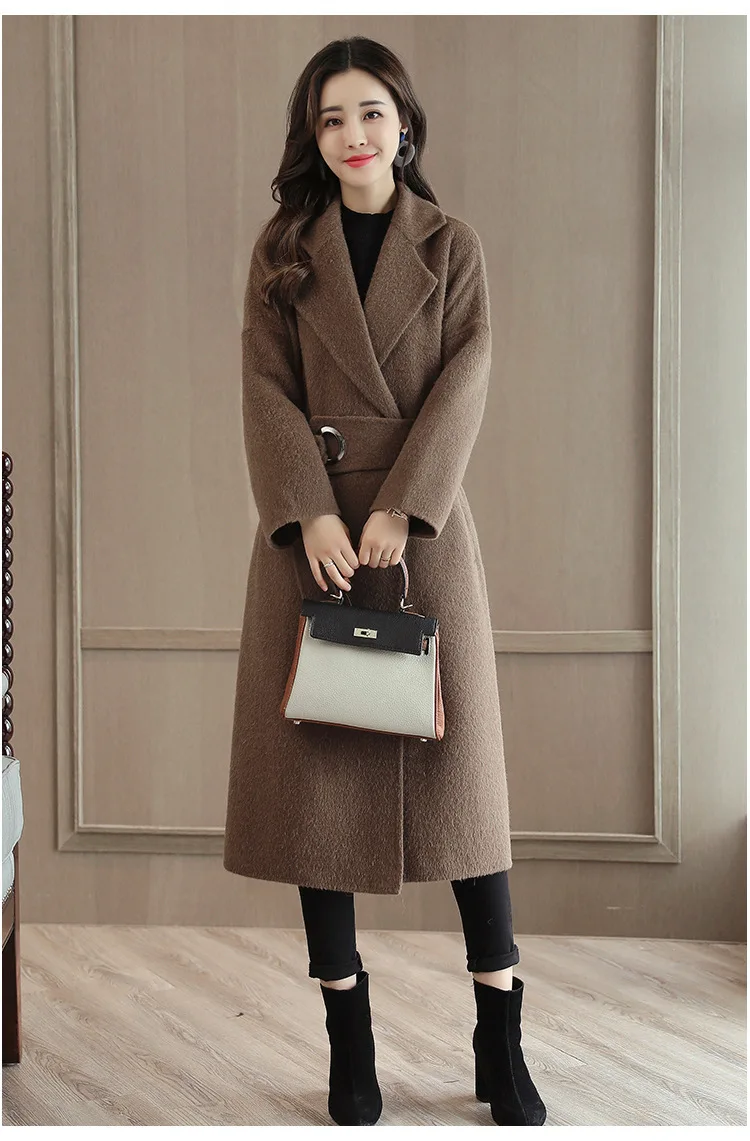 2025 Winter Office Lady Belt Dames Lange Winter Wollen Mix Jas Omslagkraag Wollen Jas En Jas Losse Effen Bovenkleding