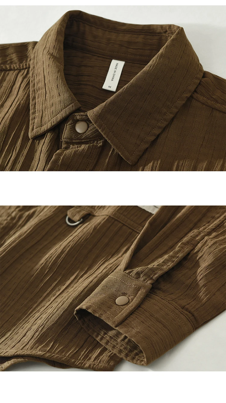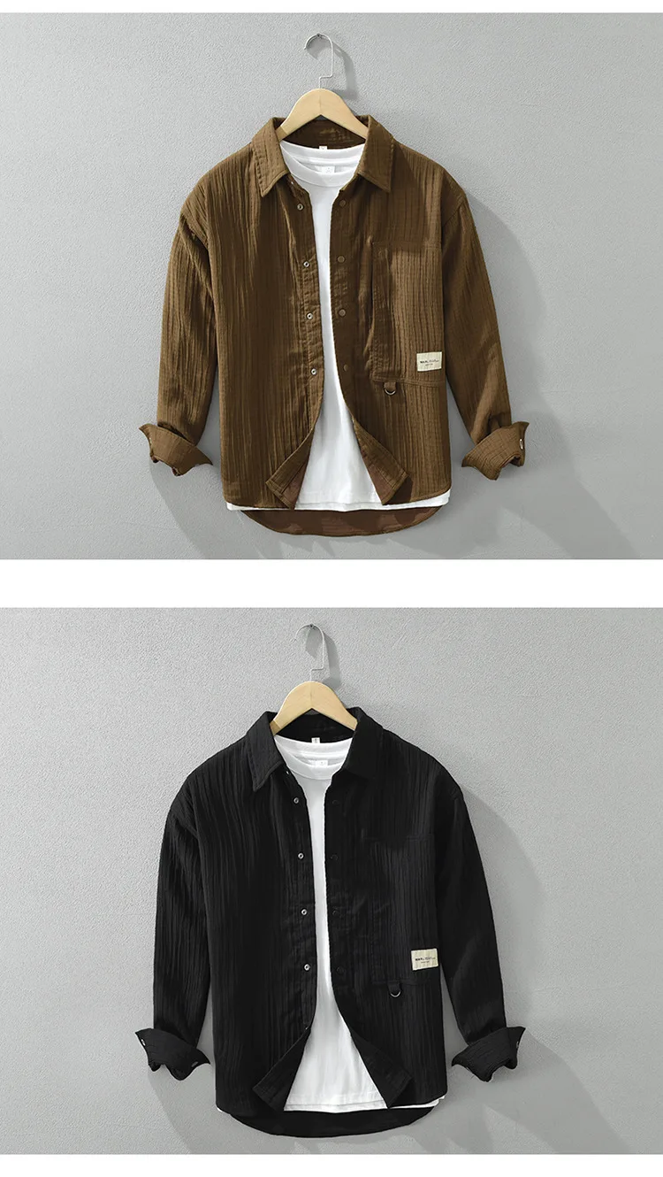 6801 Spring Autumn Japan Style Vintage Striped Shirts Loose Casual High Street Simple Fashion Lapel Long Sleeved Blouse Man