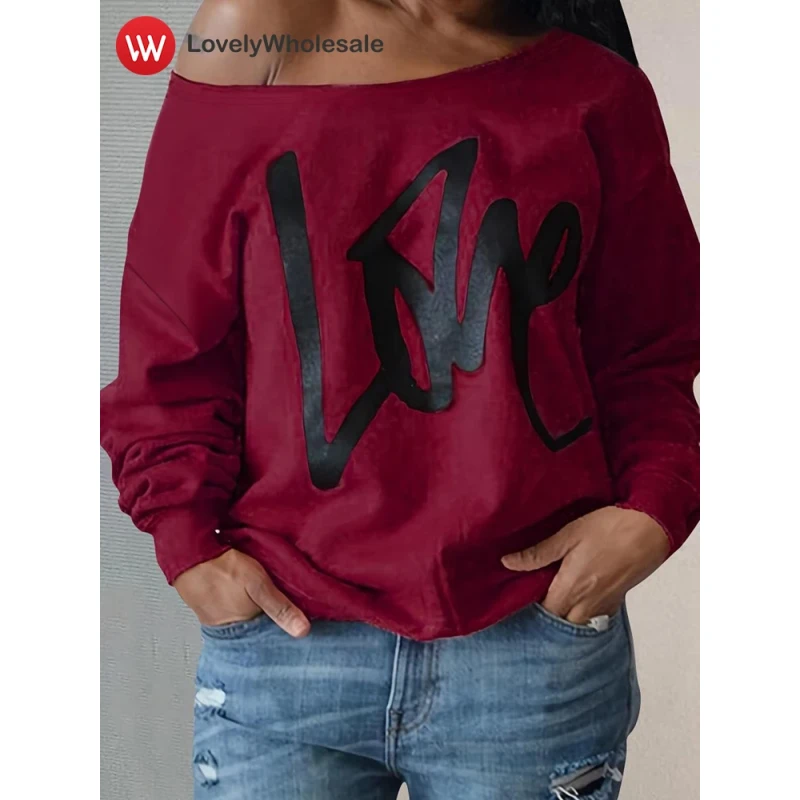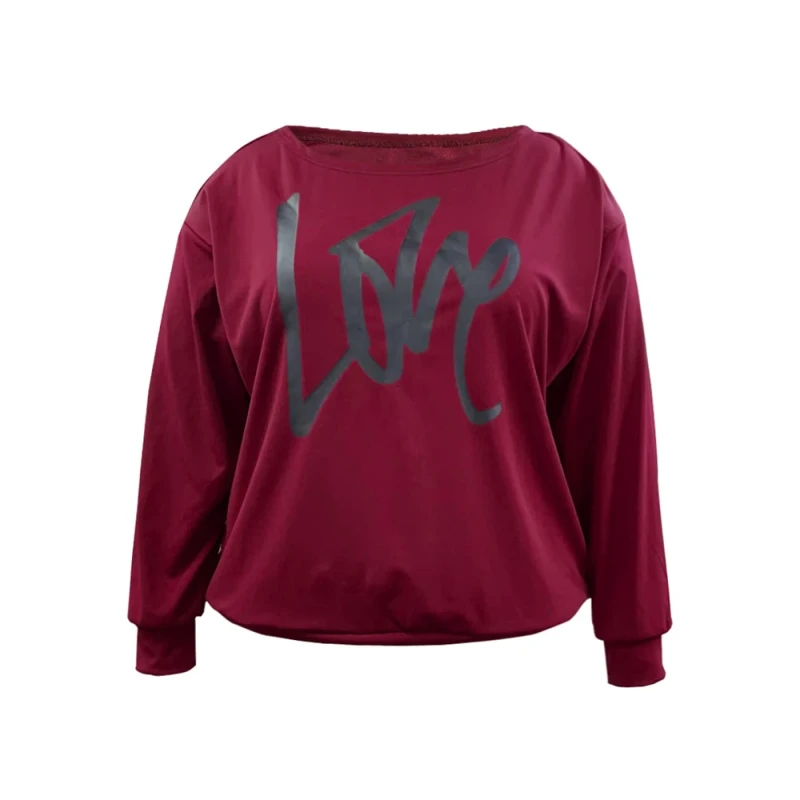 LW Plus Size Oversized Sweatshirt Women 2024 Autumn Winter Love Letter Print Pullovers Lady Casual Large Size Top Woman Clothing