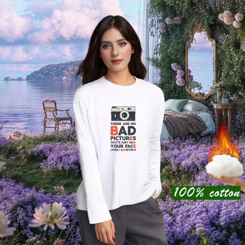 Long Sleeve Shirts European style Long sleeves 100% pure cotton Cotton Warm top Women’s clothing red T-shirt Crew Neck keep warm