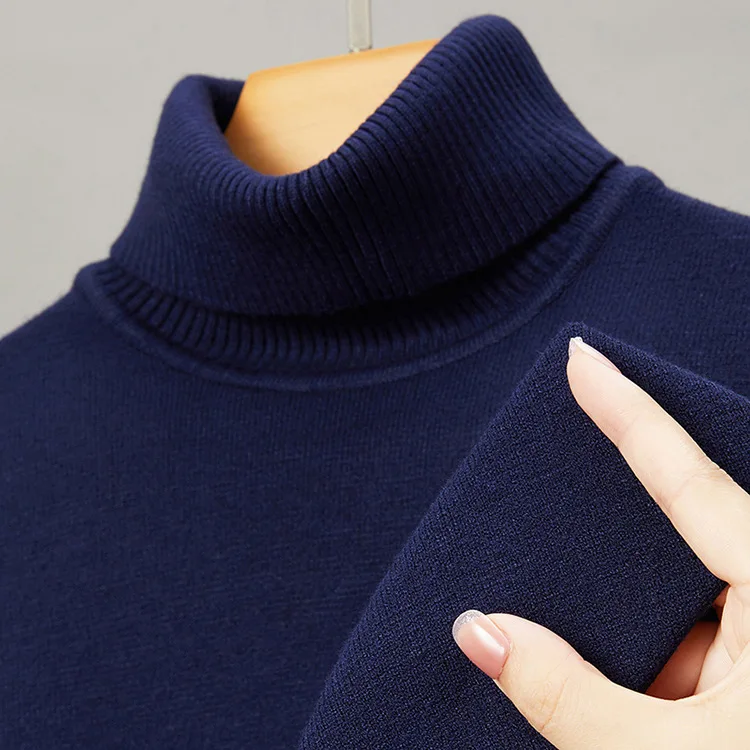 Autumn Winter Slim Fit Turtleneck Sweater Men Solid Color Warm Knitting Pullovers Male Casual Knitwear Long Sleeve Pullovers Man