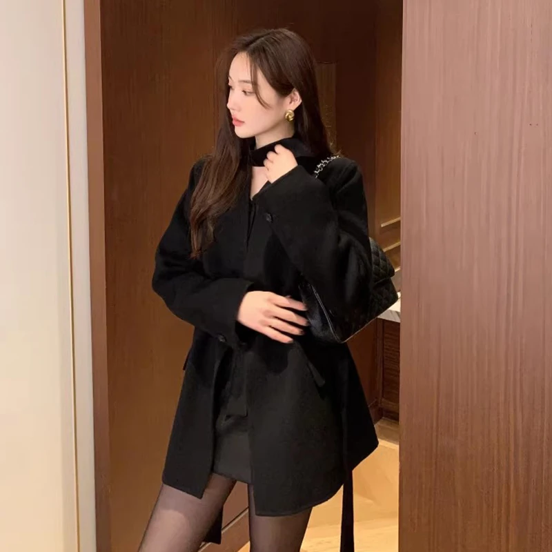 Bandage Tunic Women 2025 Outerwears V-neck Long Sleeve Jacket Korean Chaquetas Mujer Autumn Winter Jackets Temperament Coats