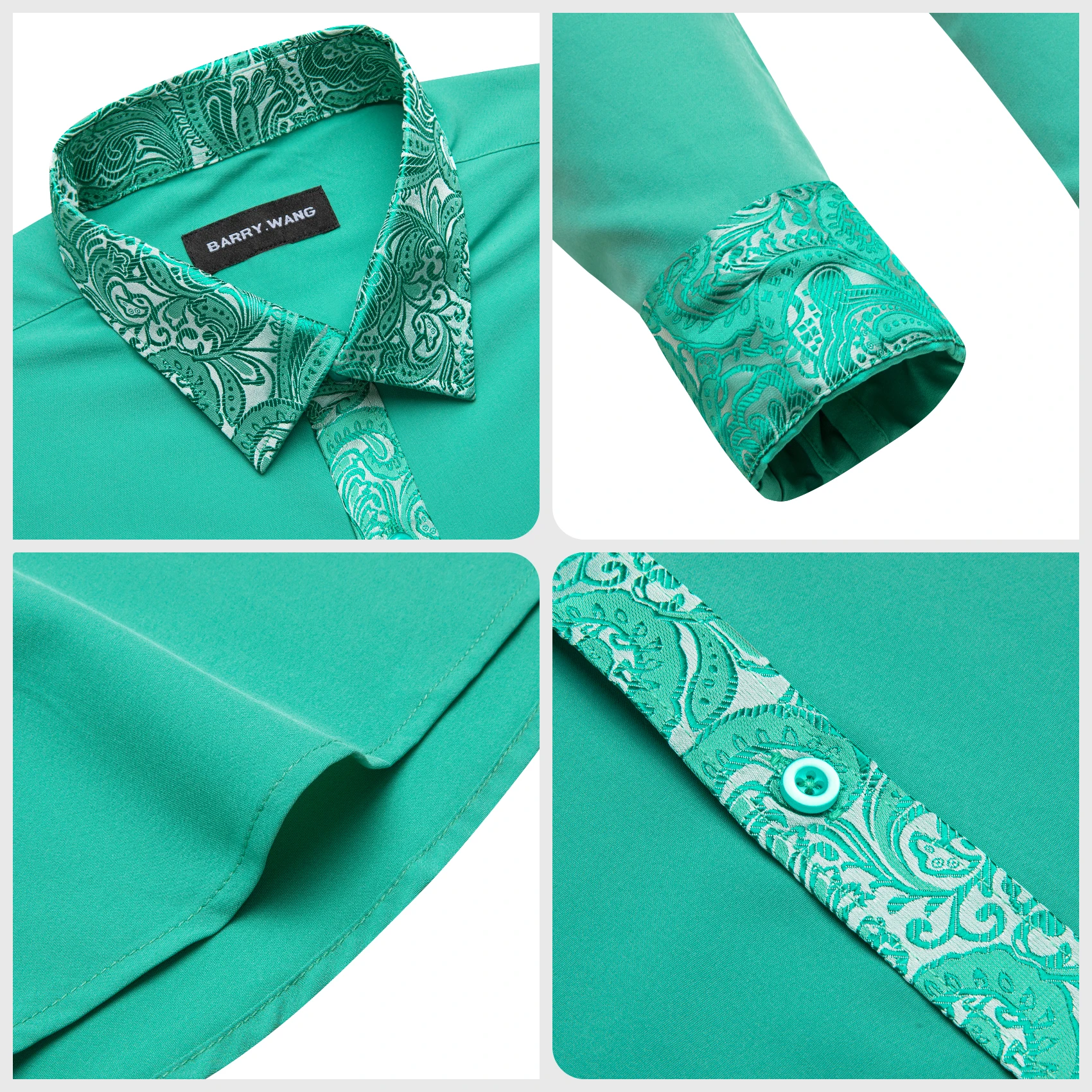 Barry.Wang Designer Silk Mens Shirts Jacquard Splicing Long Sleeve Lapel Buttons Male Blouses Stylish Wedding Business Prom Gift