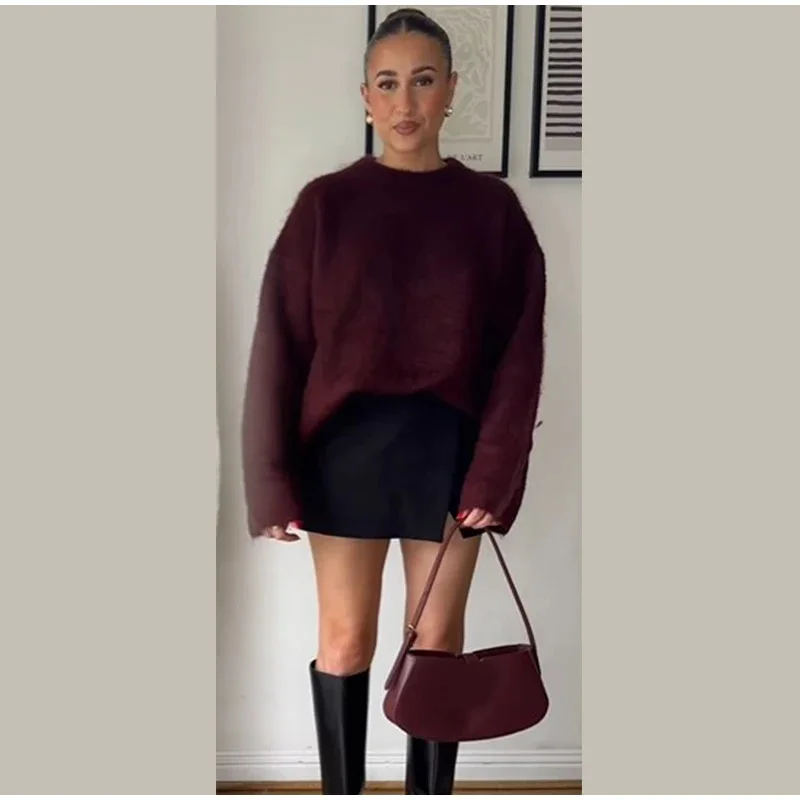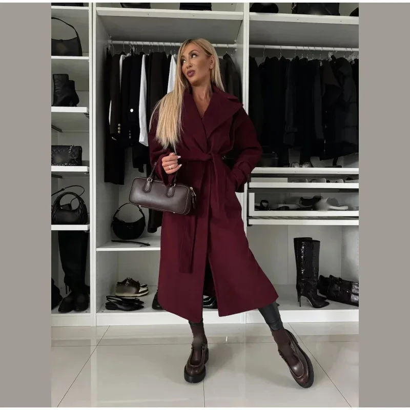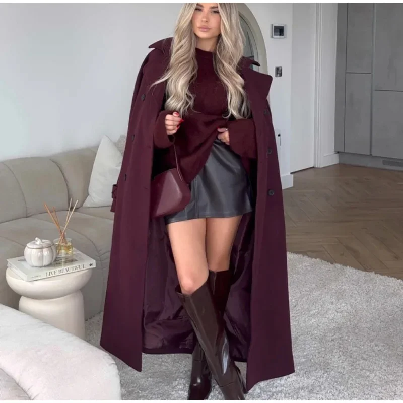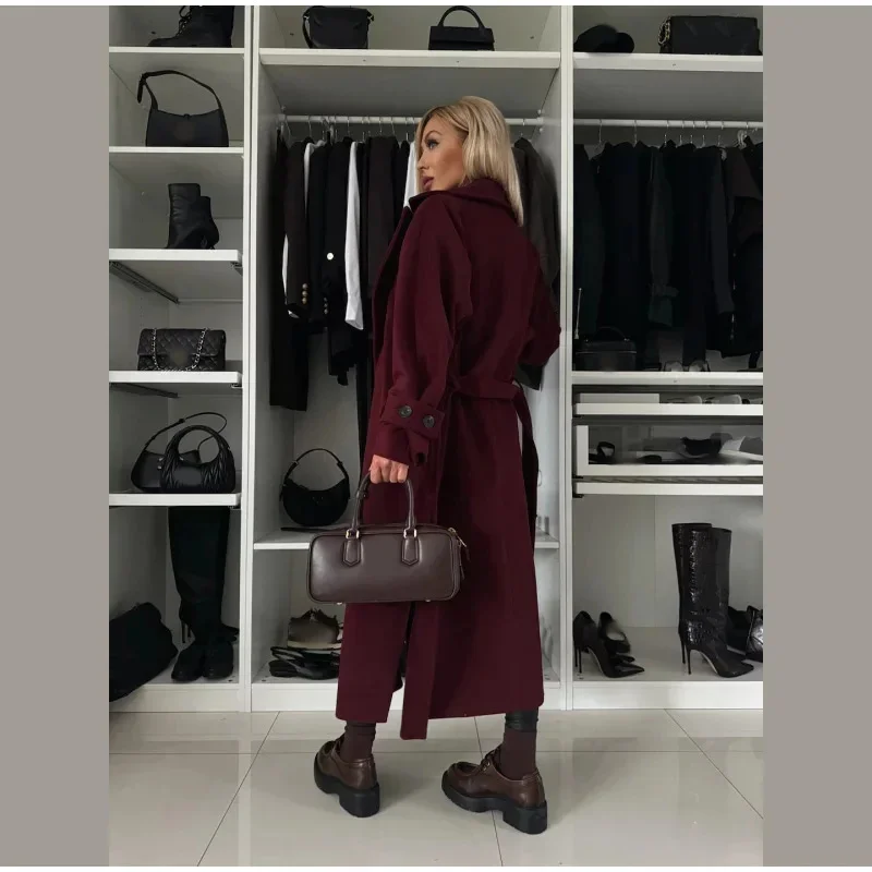 Elegante Bourgondische Turndown Kraag Enkelrijs Jas Vrouwen Casual Lange Mouwen Trui Jas Nieuwe Herfst Winter Dames Buitenkleding