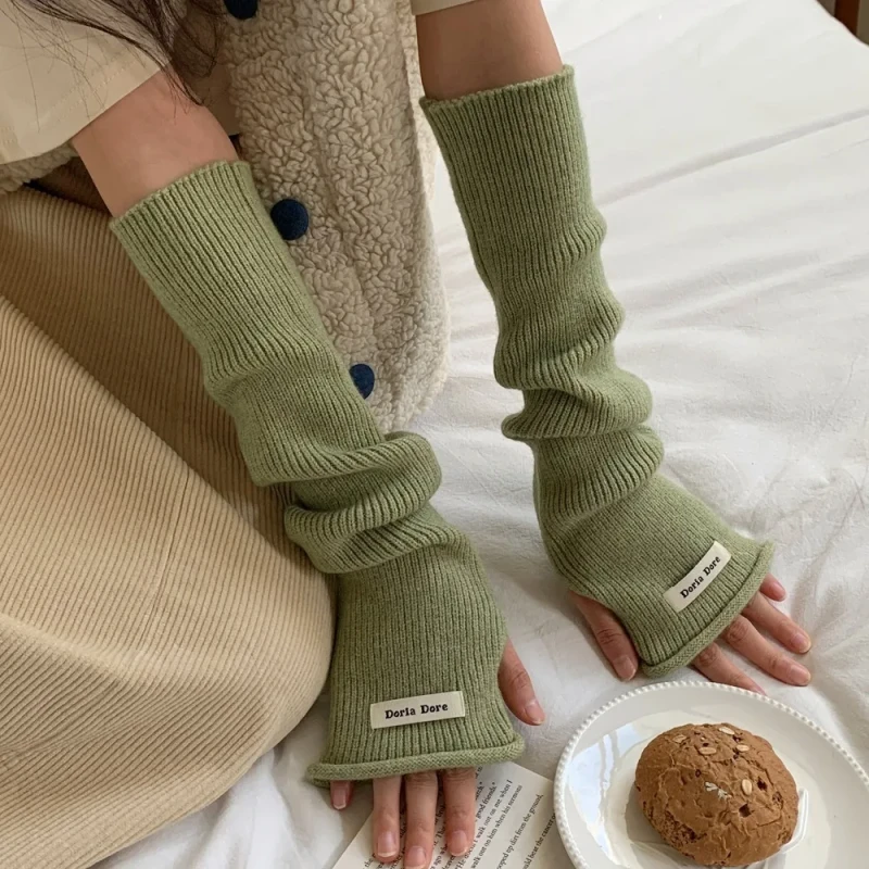 Breathable Korean Style Knitted Warm Sleeves Hole Solid Color Woolen Arm Gloves Elastic Y2k Warm Arm Covers Clothing Accessories