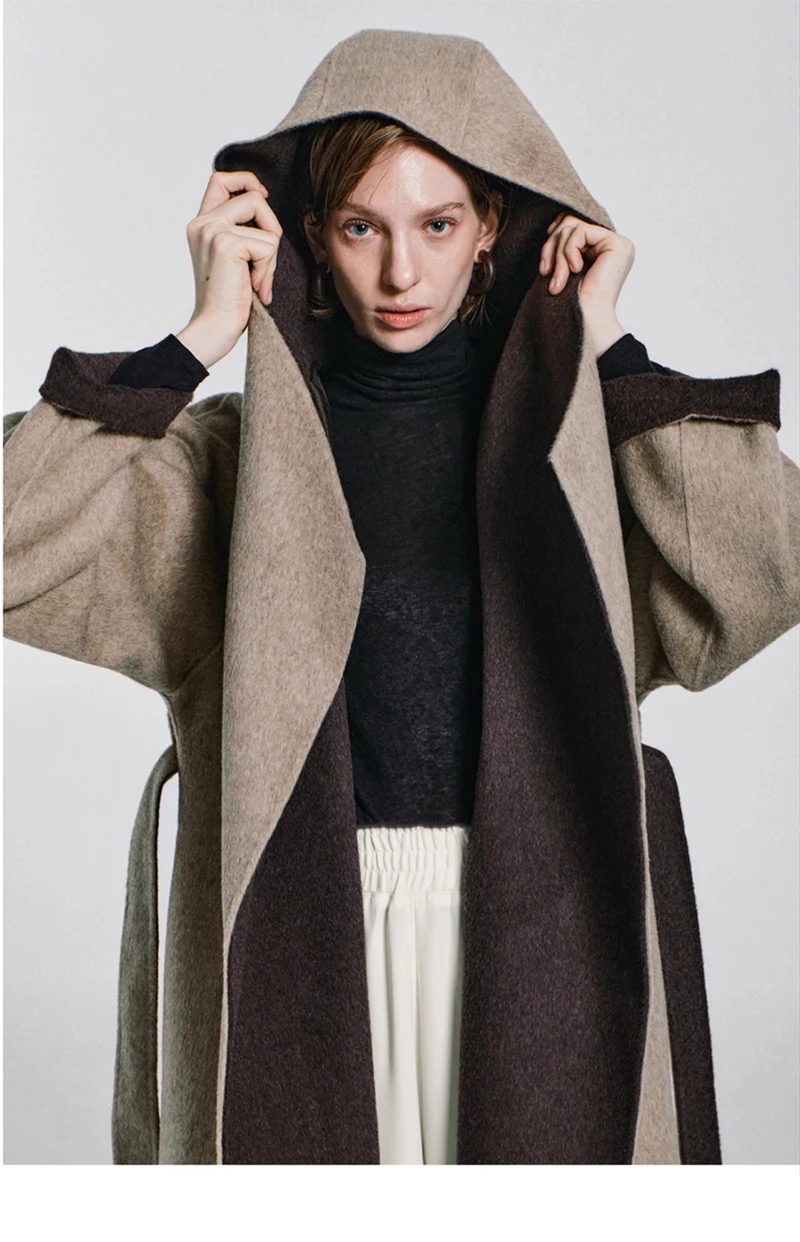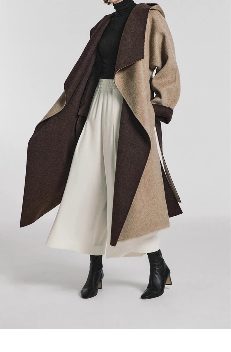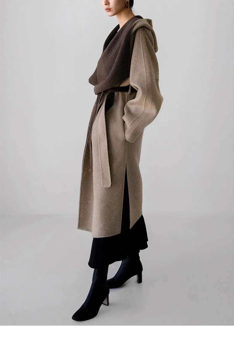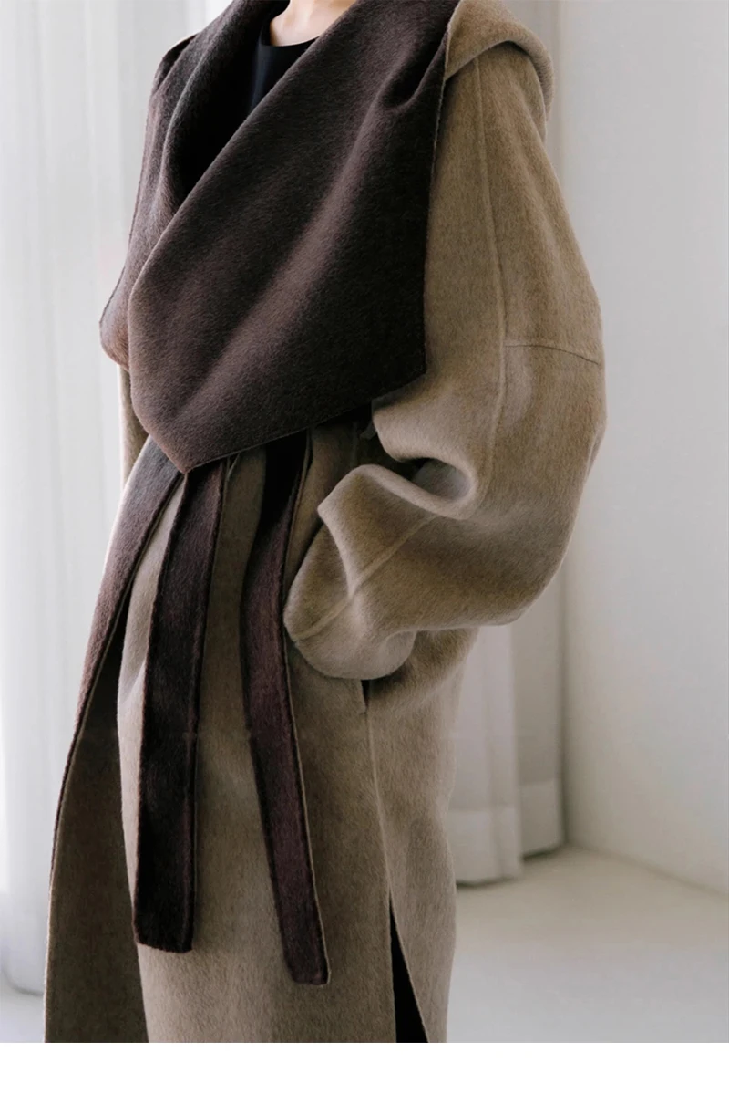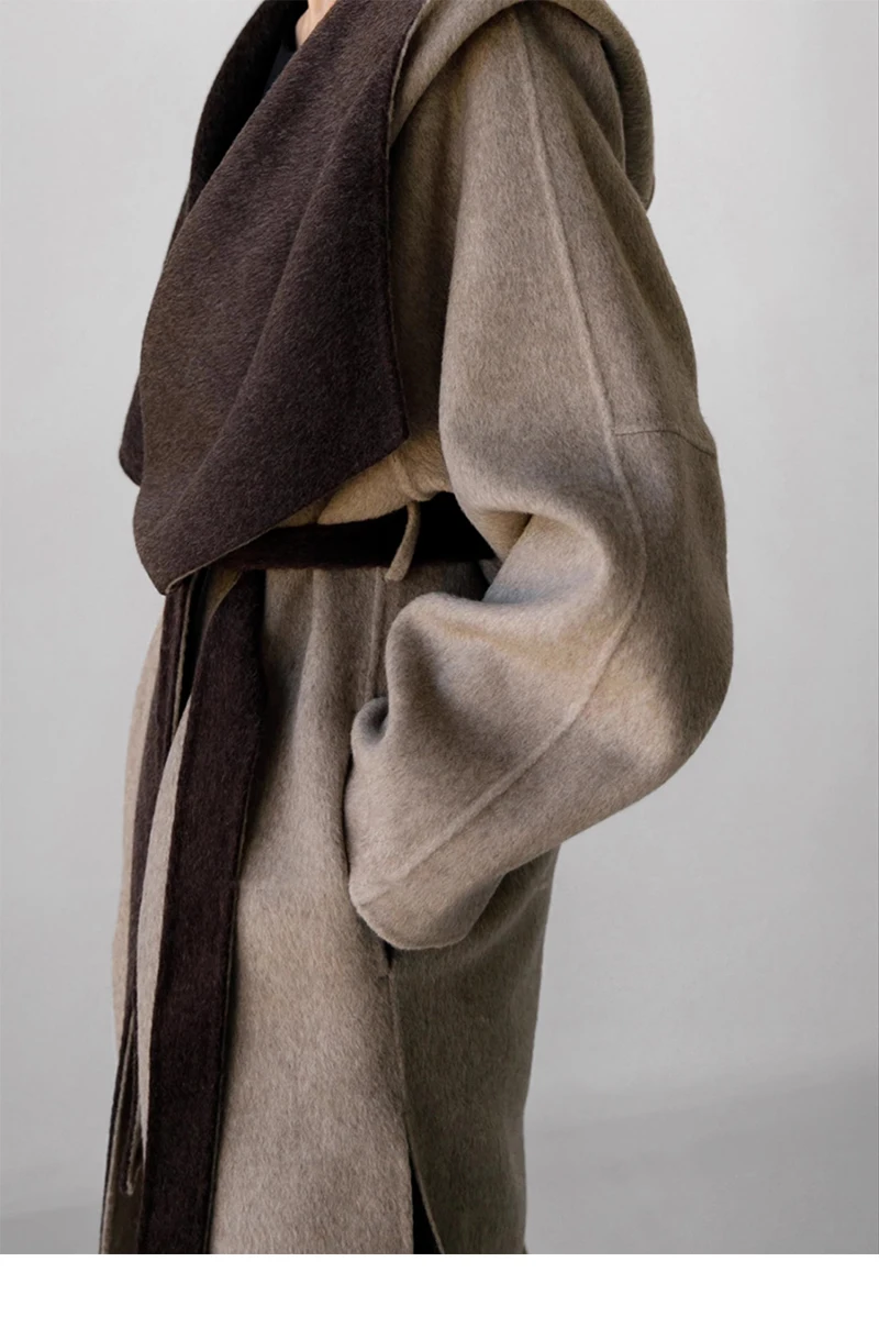Kantoor Dame Hooded Wollen Jassen 2024 Herfst En Winter Badjas Stijl Losse relaxt Vetersluiting Stropdas Dames Lange Wollen Jassen