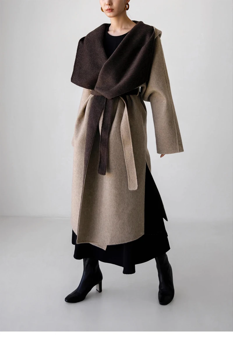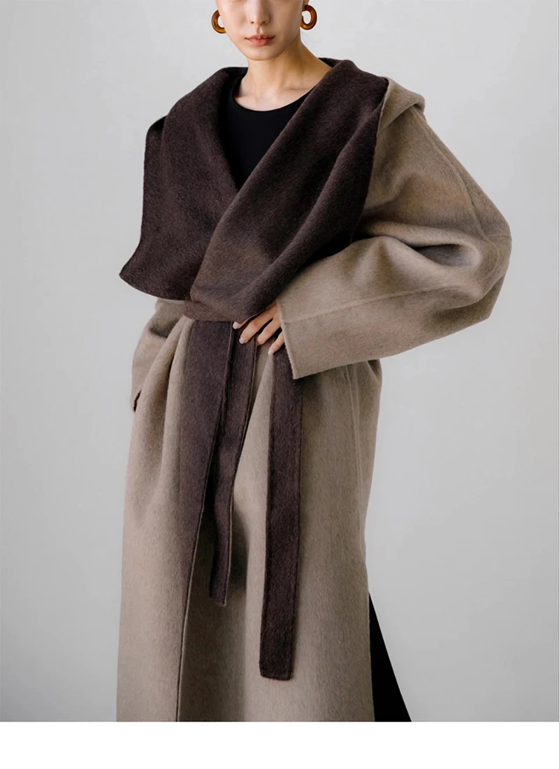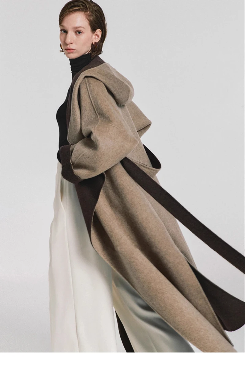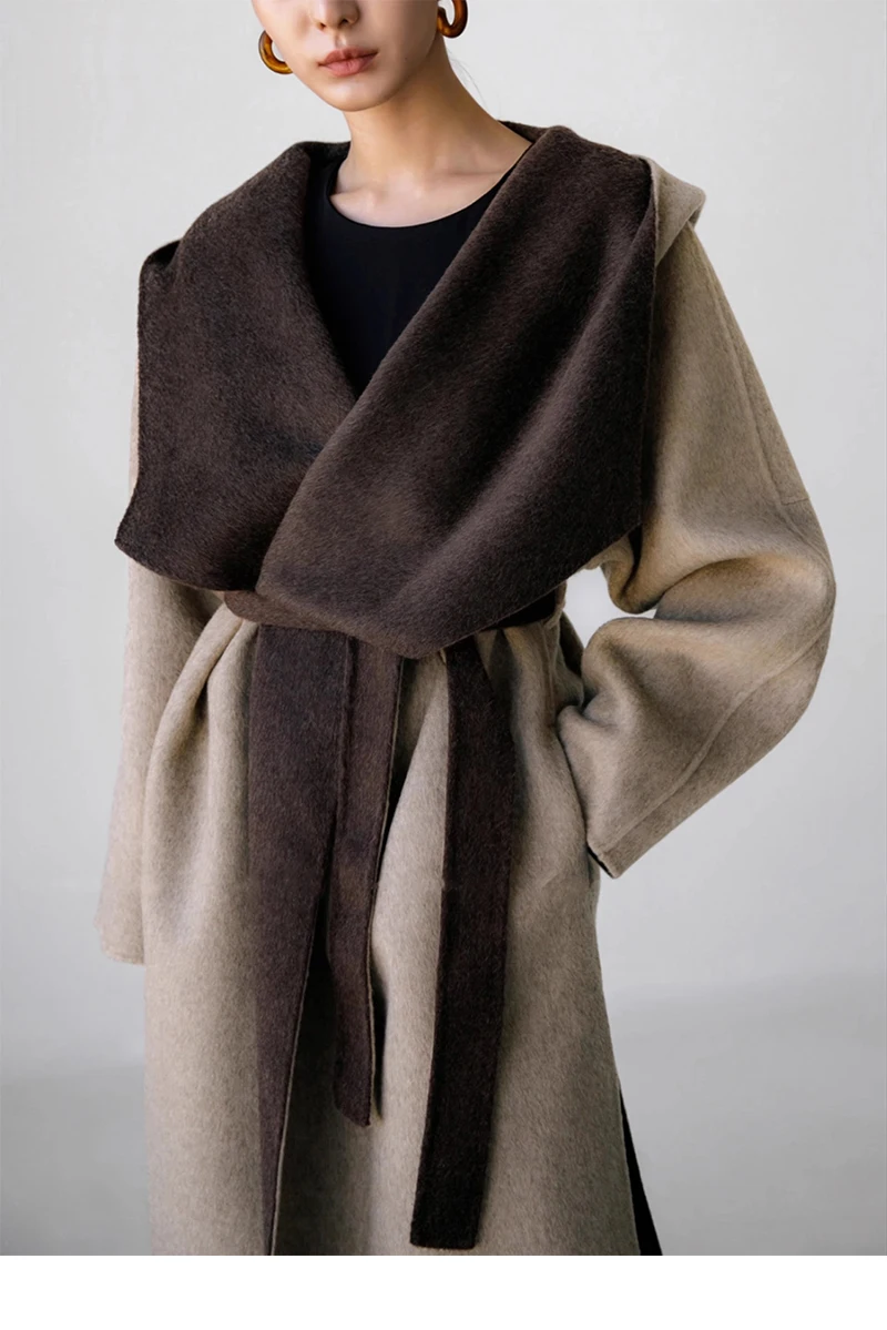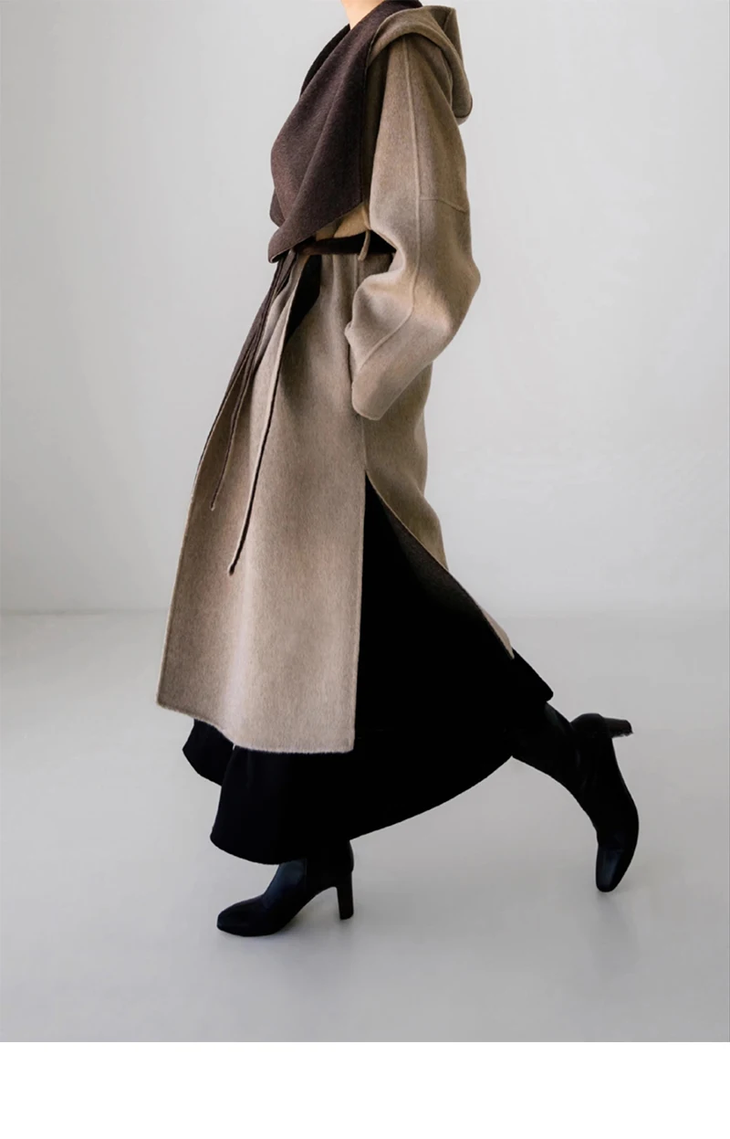 Kantoor Dame Hooded Wollen Jassen 2024 Herfst En Winter Badjas Stijl Losse relaxt Vetersluiting Stropdas Dames Lange Wollen Jassen