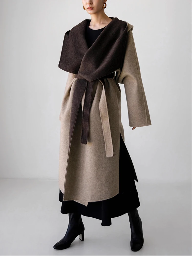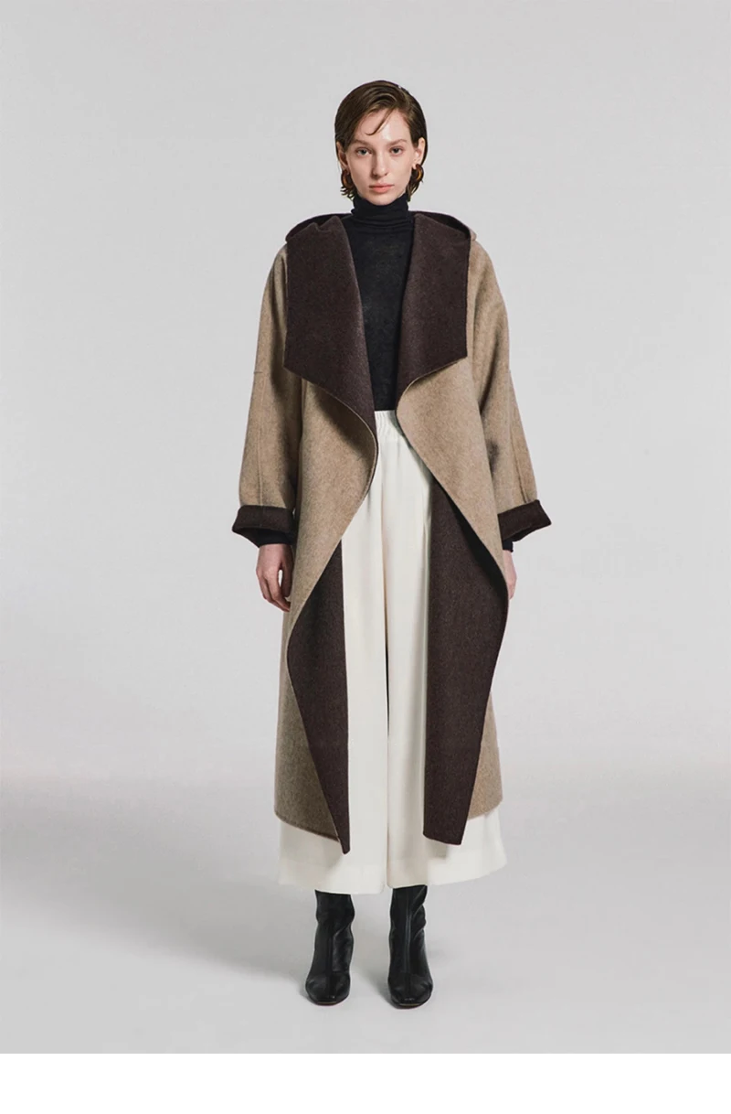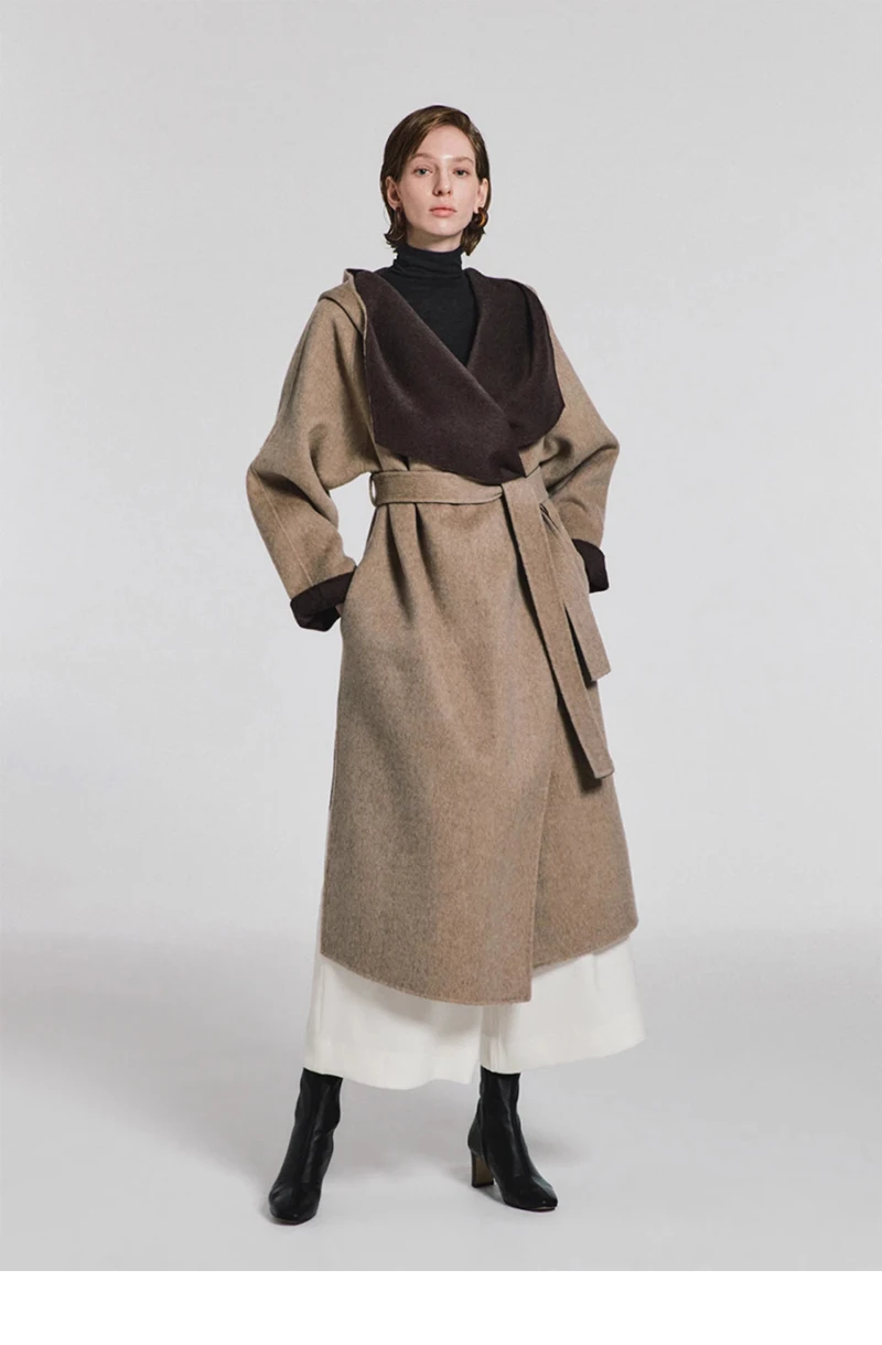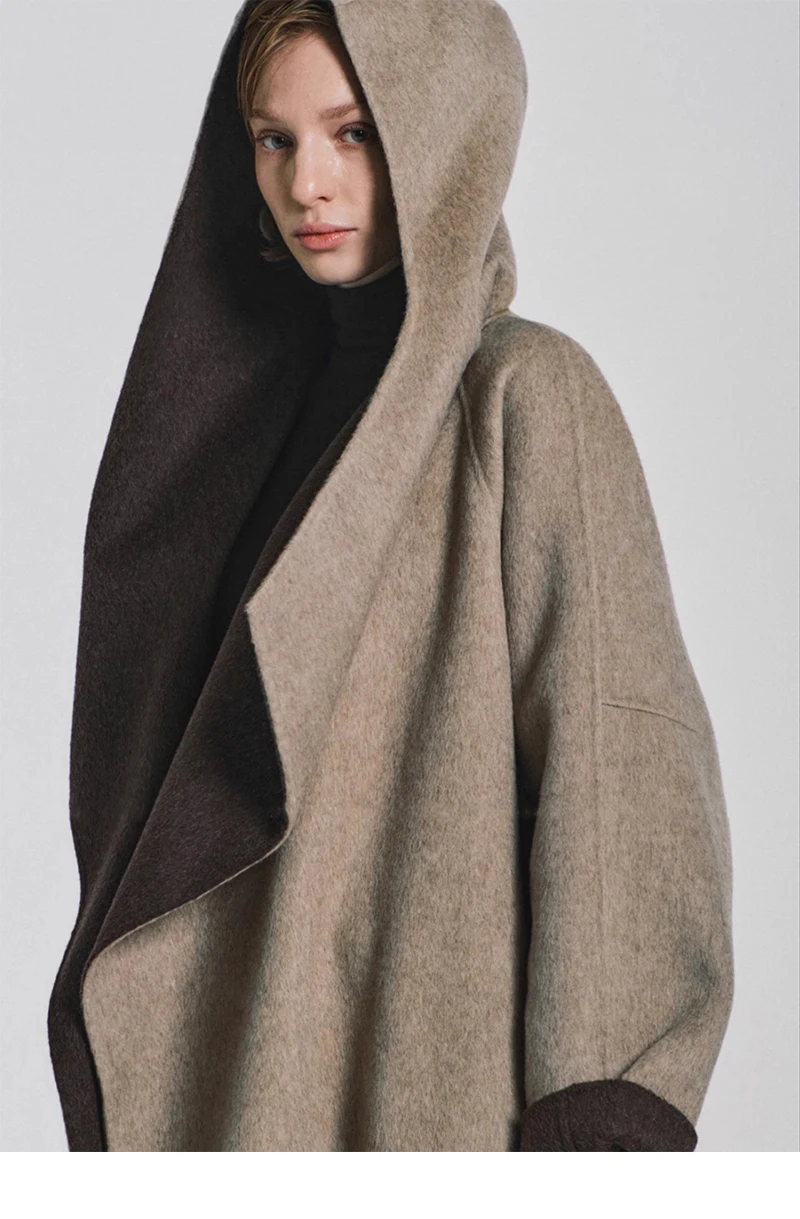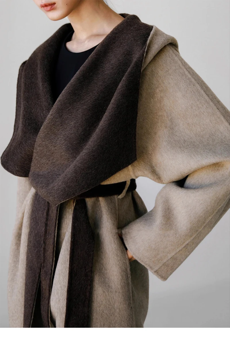 Kantoor Dame Hooded Wollen Jassen 2024 Herfst En Winter Badjas Stijl Losse relaxt Vetersluiting Stropdas Dames Lange Wollen Jassen
