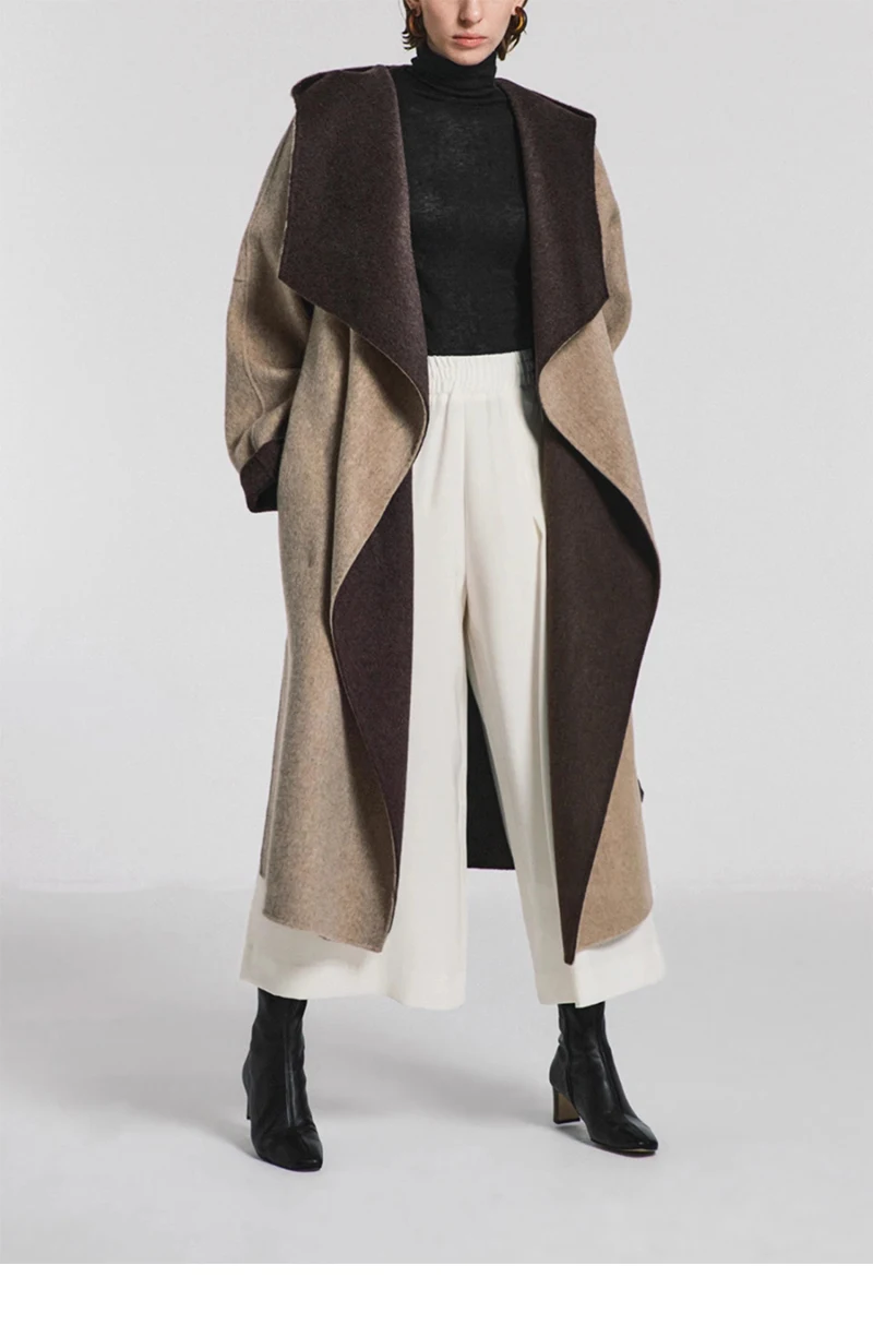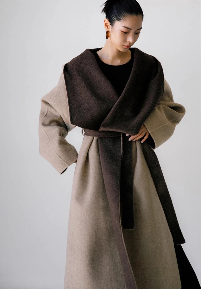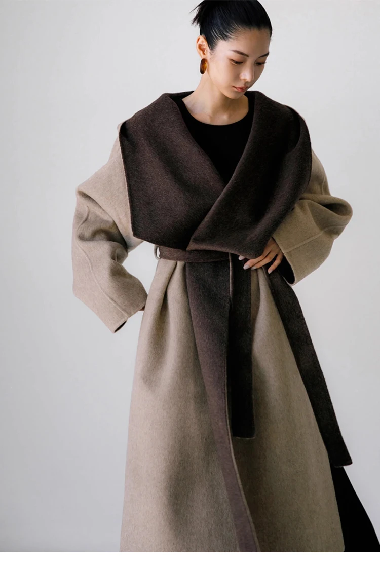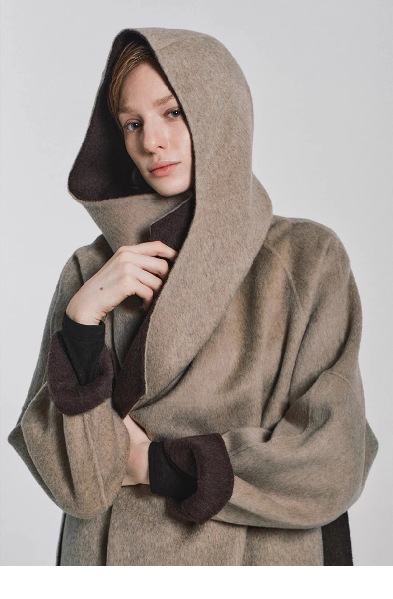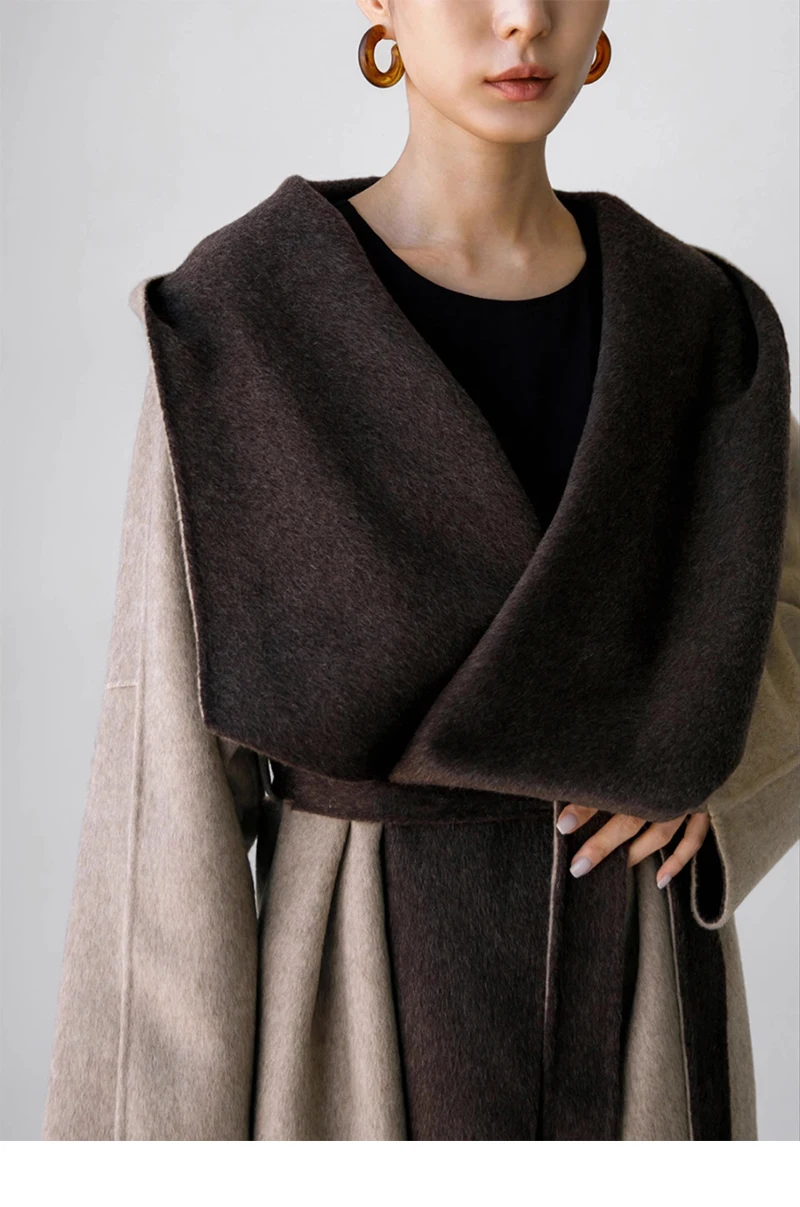 Kantoor Dame Hooded Wollen Jassen 2024 Herfst En Winter Badjas Stijl Losse relaxt Vetersluiting Stropdas Dames Lange Wollen Jassen