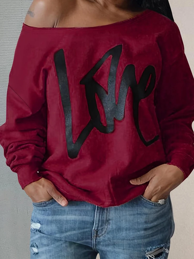 LW Plus Size Oversized Sweatshirt Women 2024 Autumn Winter Love Letter Print Pullovers Lady Casual Large Size Top Woman Clothing