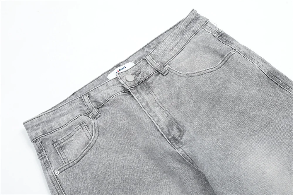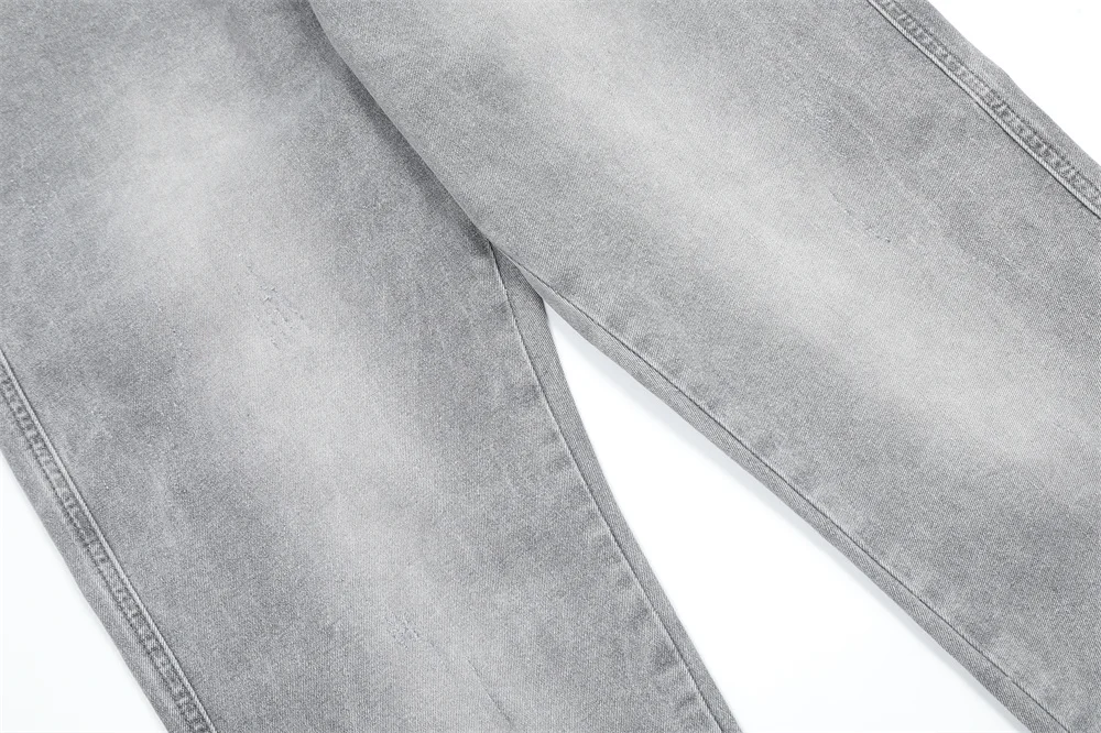 Raw Edge Denim Pants Men Streetwear Loose Straight-leg Pants Washed Distressed Casual Jeans Men