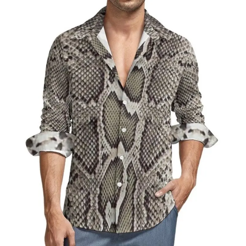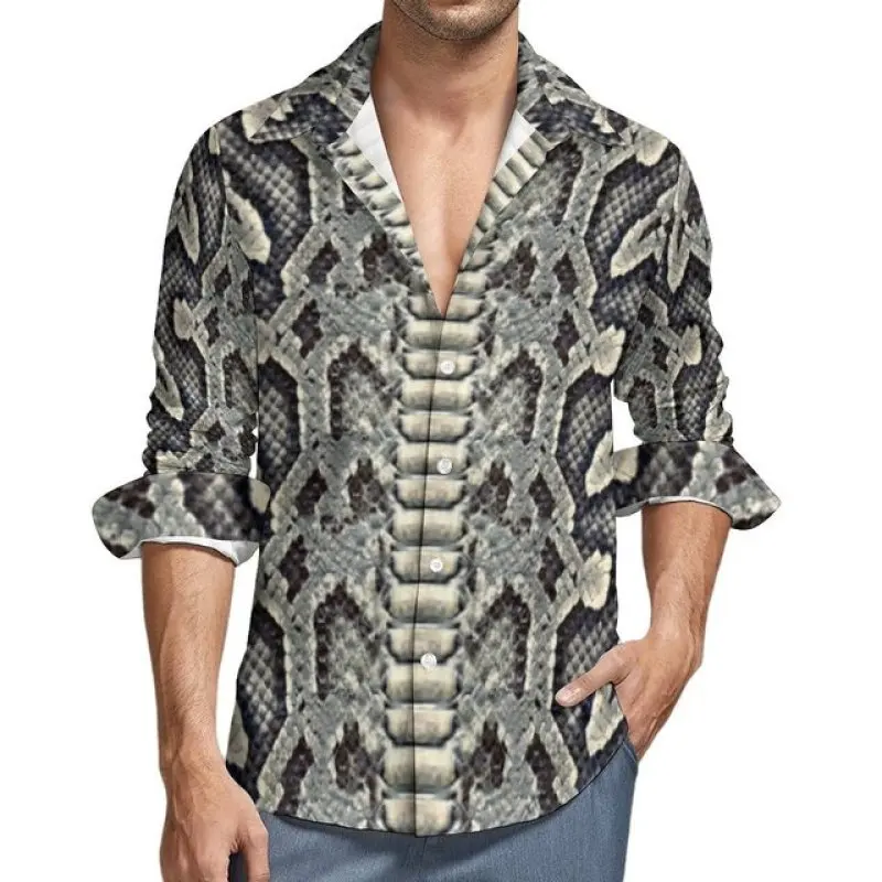 Snakeskin Pattern Print Men’s Shirts Casual Single-Breasted Blouses Long Sleeve Shirt Streetwear Trend Lapel Tops Men Clothing