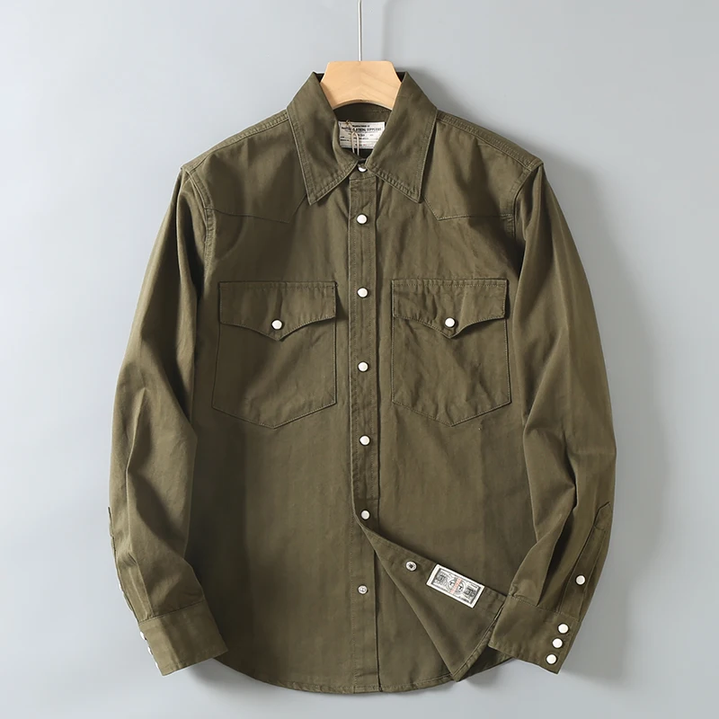 Spring And Autumn New American Retro Long-Sleeve Lapel Cargo Shirt Men’s Fashion 100% Cotton Washed Double Pocket Casual Blouses