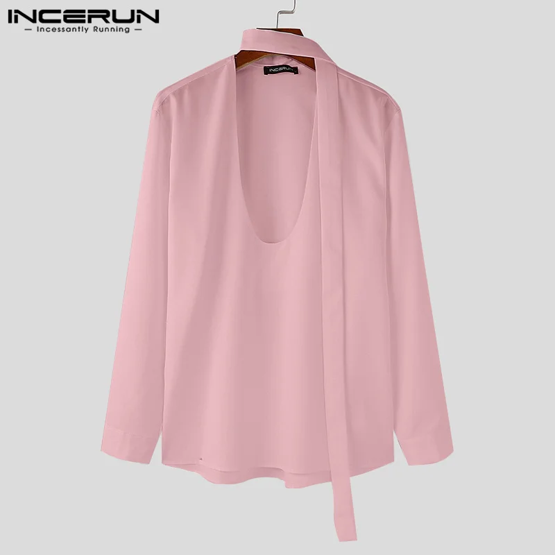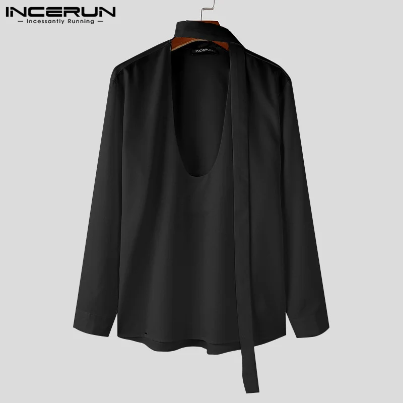 Stylish New Men’s Clothing INCERUN 2024 Deconstruction Design Solid Lace Up Shirts Casual Streetwear Long Sleeved Blouse S-5XL