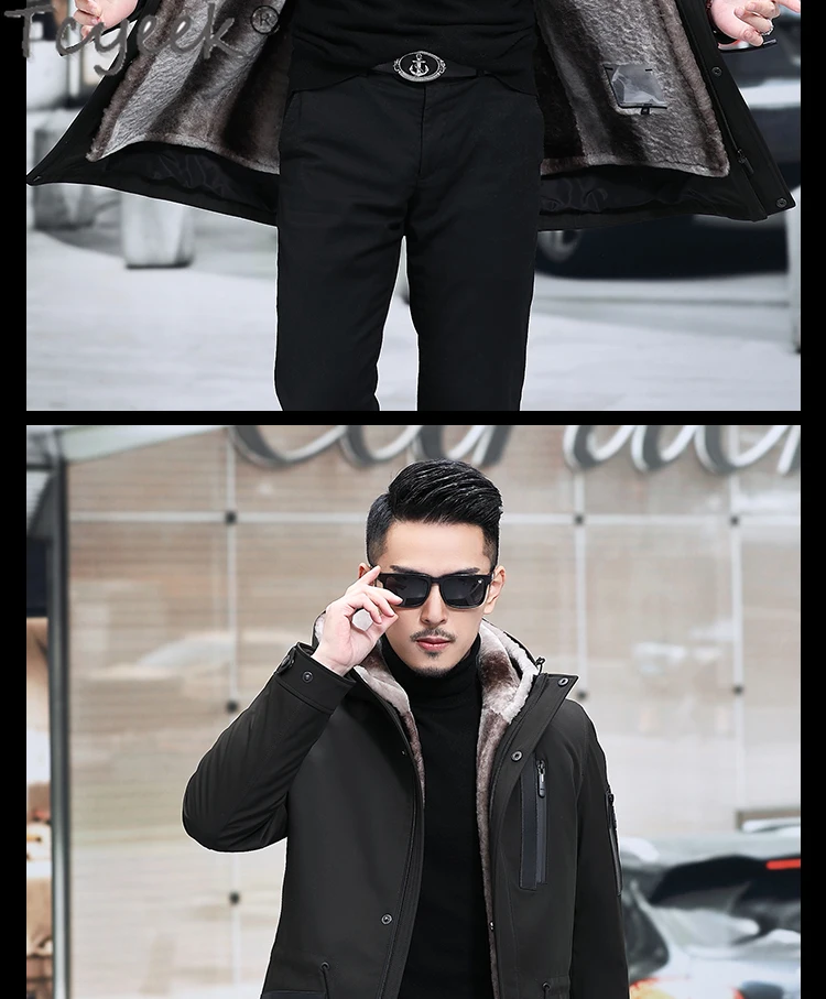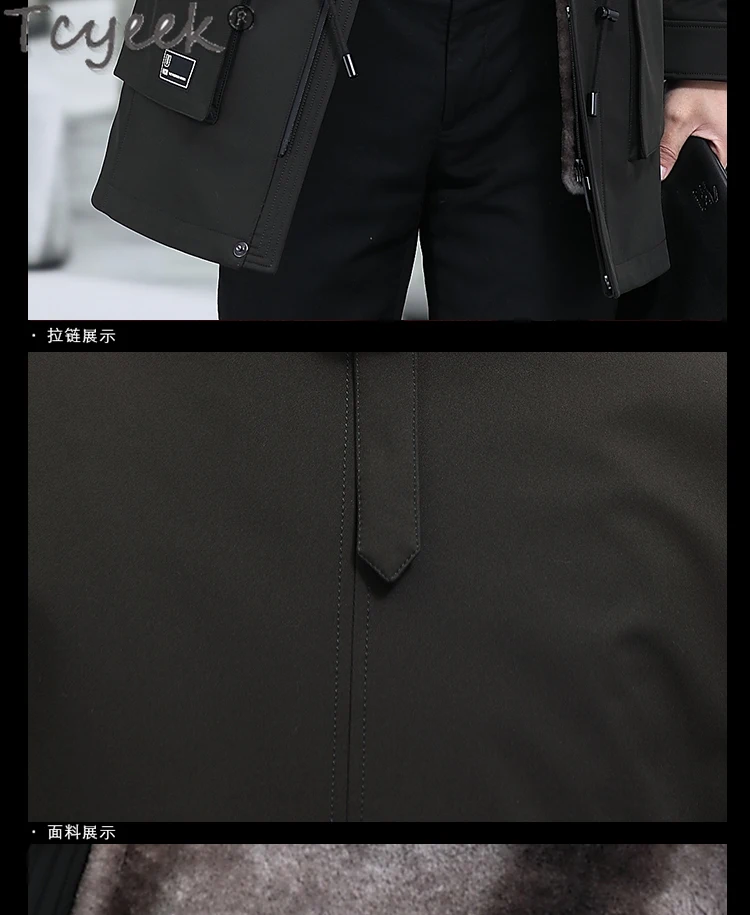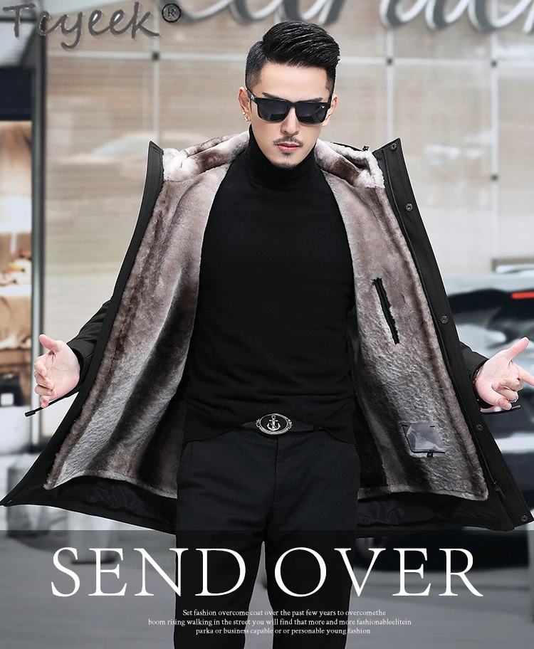 Tcyeek Mens Real Fur Parka Mid-length Winter Jackets for Men Clothing Warm Wool Liner Hooded Coat Male Fashion Fur Jacket Slim