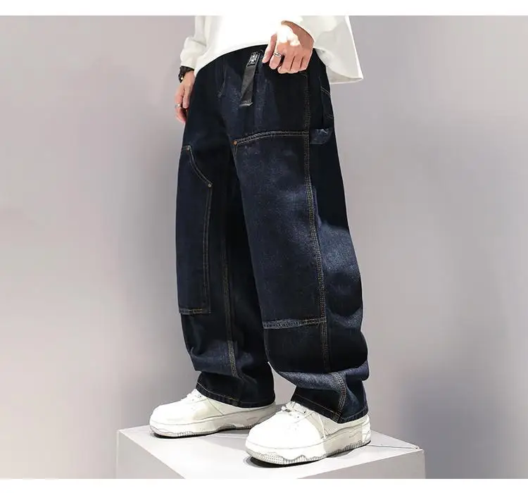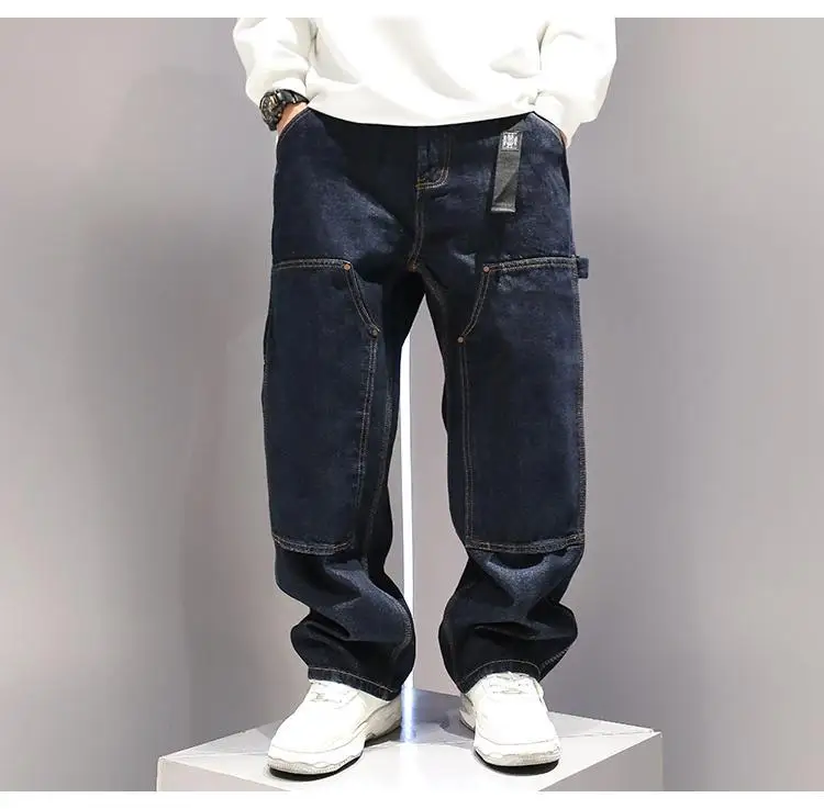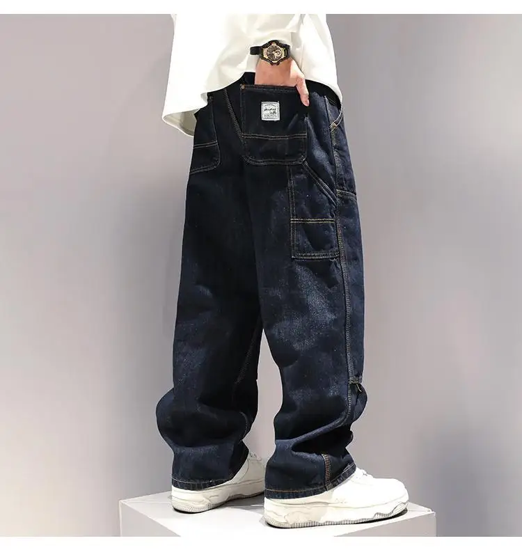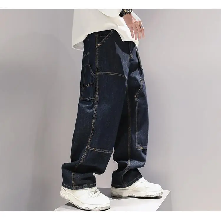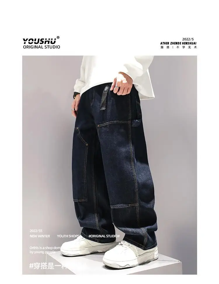 Washed Straight Leg Jeans for Men with a Niche Design Sense Loose and Versatile Wide Leg Long Pants and Stylish Work Pants