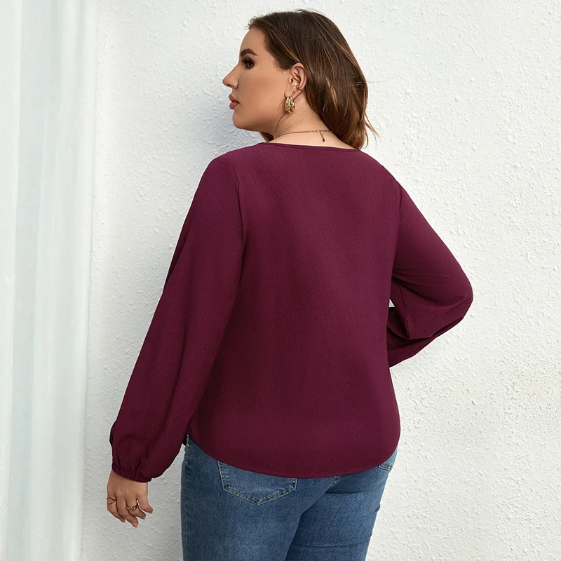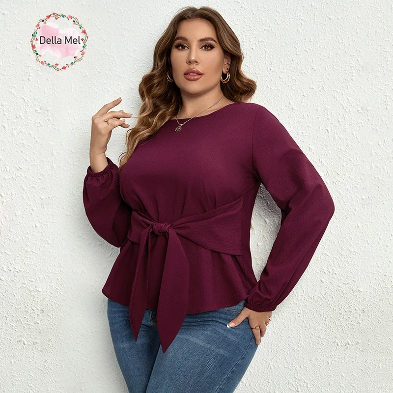 Della Mel Plus Size Women Clothing O-Neck Solid Tops Fashion Elegant Long Sleeve Office Female Casual Large Size Lady Blouses